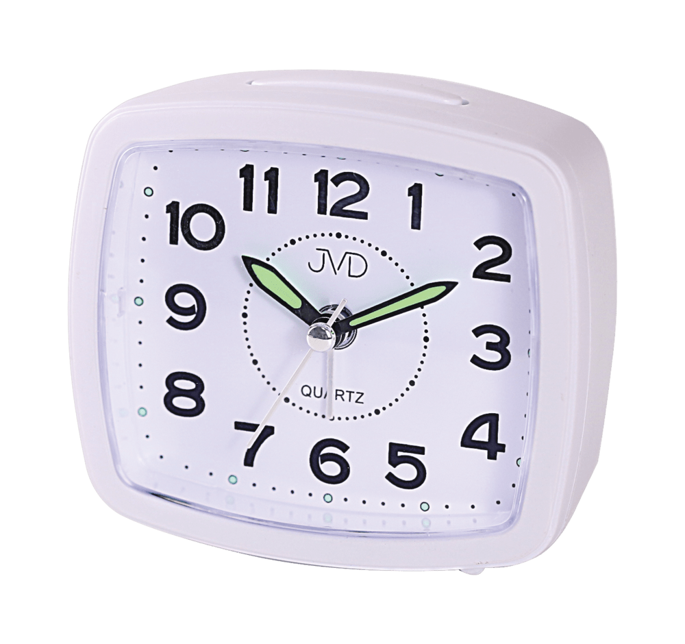 Analógový budík s lumiscenčnými ručičkami.